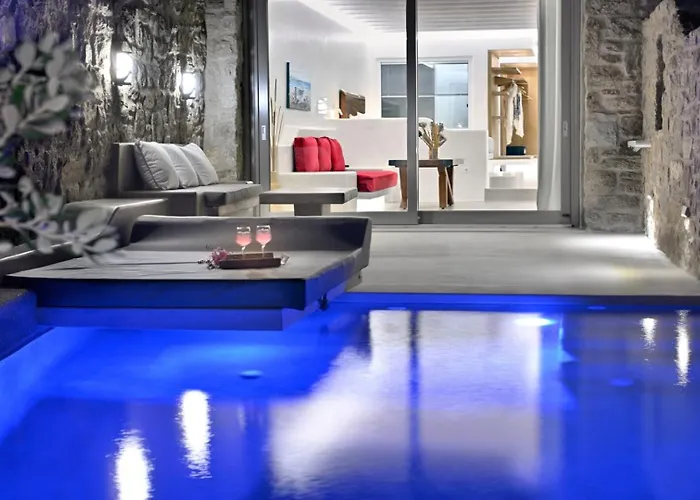 Mykonos Town center kan man nå inden for 30 minutters gang. Du kan komme til Agrikulturmuseet om få minutter i bil. 5 minutters køretur vil tage gæster til Mykonos lufthavn.